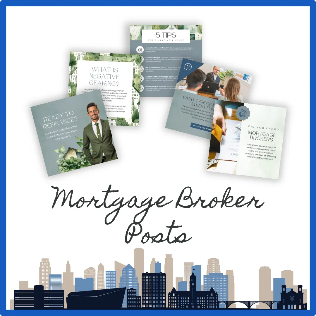 Enhance your social media presence with 50+ engaging posts designed for mortgage brokers. These templates feature attractive designs and customizable content to help you share mortgage-related information and attract clients.
